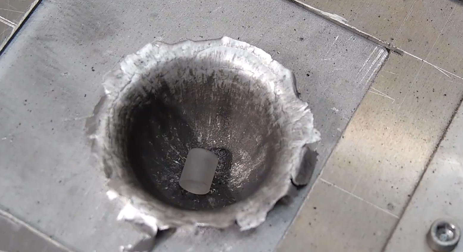 产生一个直径是塑料柱5到6倍的光滑弹坑