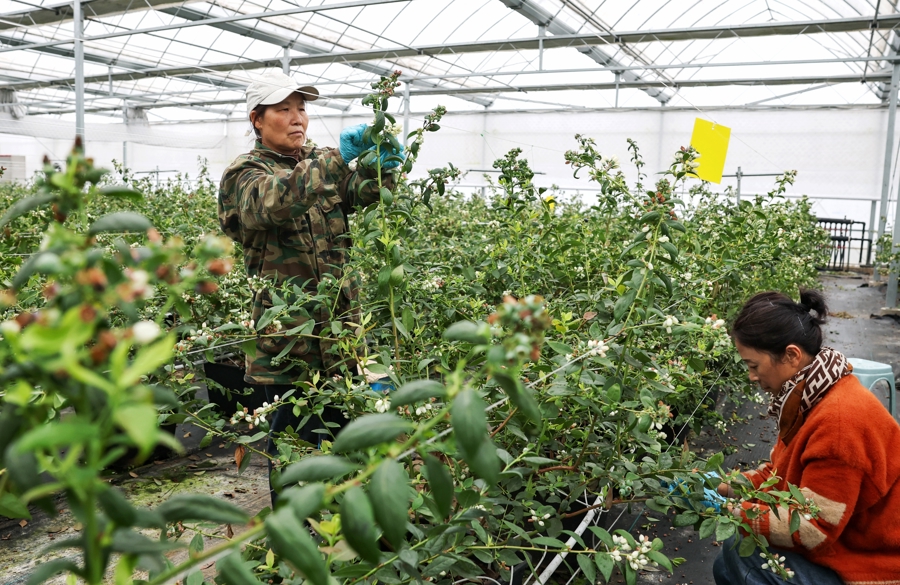 该新式智能温室大棚承袭外遮阳、内保温、地源热泵等温控本领,并配套先进水肥一体化灌溉系统,为蓝莓滋长提供环境保险。