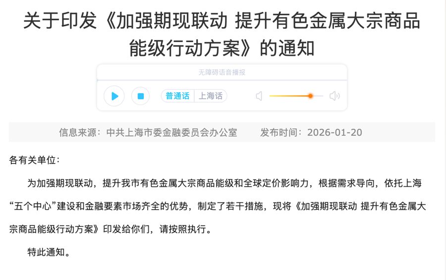与此同时,面对近期有色金属价格剧烈波动,上海正着力打通期货、现货与场外衍生品三大市场壁垒,全面提升资源配置效率和定价话语权。