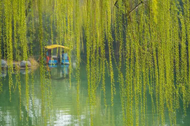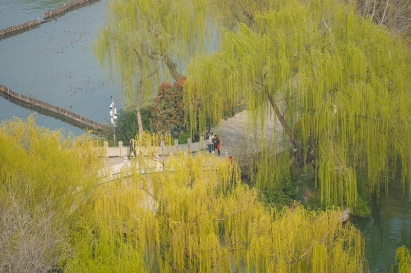 近日,山东省济南市气温回升,大明湖畔的柳树披上新绿,眩惑旅客踏春游览。大明湖湖岸种有大量柳树,以“四面荷花三面柳,一城山色半城湖”的气象闻明。