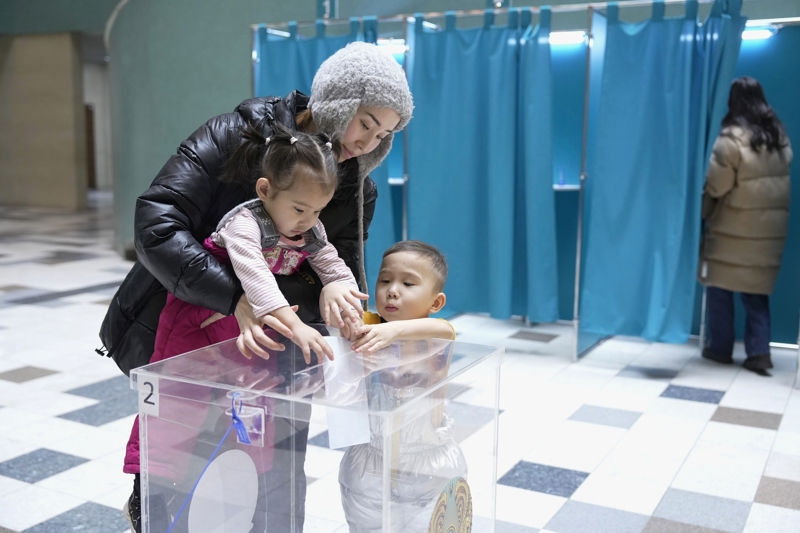 3月15日,选民在哈萨克斯坦都门阿斯塔纳的一处投票站干涉就新宪法草案举行的公投。 新华社发(奥斯帕诺夫摄)